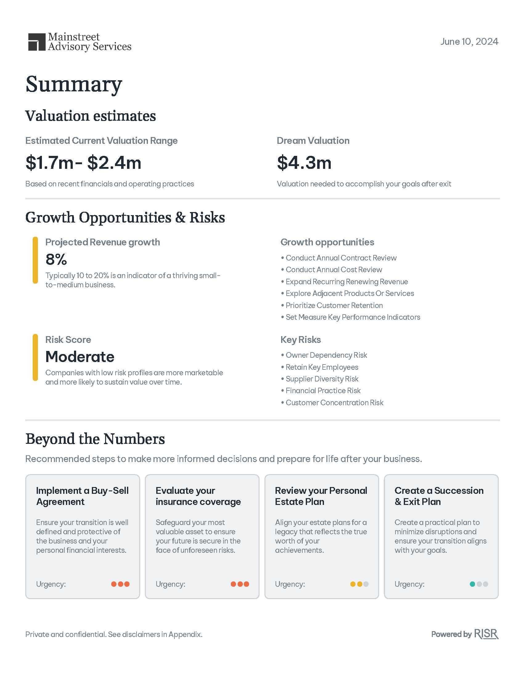 Well, if you click below, you can create your own valuation of your business easily and securely? Once you finish, a member of our staff will generate your report and send it to you. No obligation for further discussions. That said, if you are interested in finding a buyer, protecting your business or transferring it to your family or other individuals, we can help.